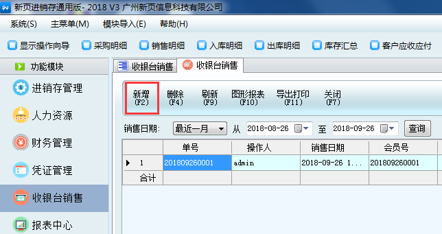 5、打開收銀臺銷售,點(diǎn)擊新增