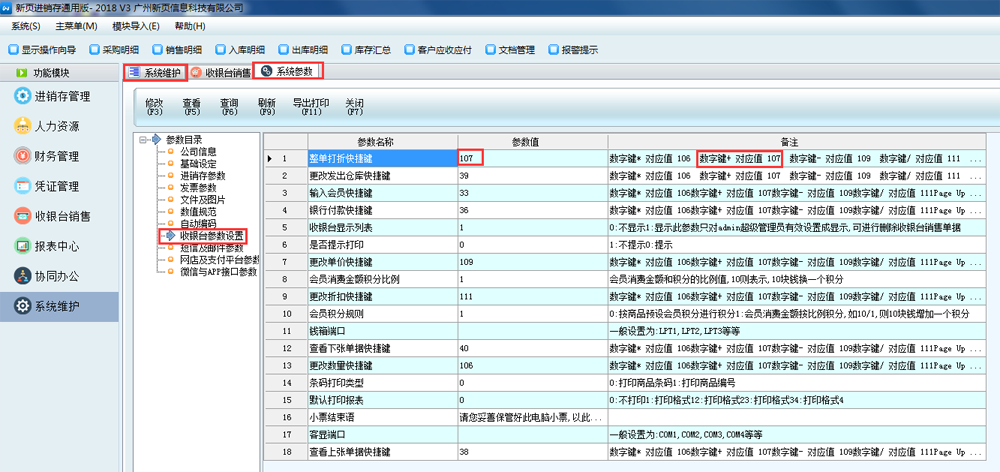 7、如下圖,藍(lán)色的字體,按*可以更改商品數(shù)量,按/可以更改商品折扣等等,如果需要更改快捷鍵,可以在系統(tǒng)維護(hù)-系統(tǒng)參數(shù)-收銀臺參數(shù)設(shè)置去修改