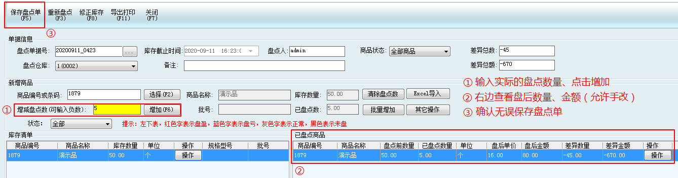如:演示品 在倉庫1 庫存余50個 成本15元