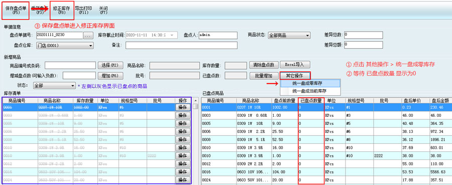 盤點前進入庫存查詢表,查看庫存產品的具體信息,與實際情況進行校對后,最終決定產品盤成多少。