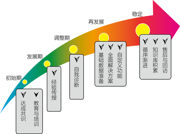 企業(yè)業(yè)務(wù)人員對(duì)業(yè)務(wù)的理解需要經(jīng)過一段成熟的過程。對(duì)一些業(yè)務(wù)流程的確定是通過不斷的交互過程來實(shí)現(xiàn)。有一系列與企業(yè)用戶溝通的方法,這些方法并不是僅通過口頭交流,而且,還建立了一整套嚴(yán)格規(guī)范的文檔來實(shí)現(xiàn)。這些文檔記錄著整個(gè)交流的過程,并且被一直保留下來,成為企業(yè)知識(shí)庫的長期積累,對(duì)企業(yè)相關(guān)的人員都會(huì)提供幫助。
